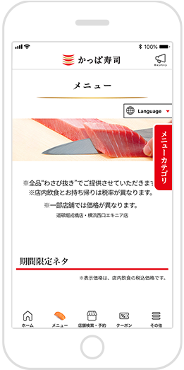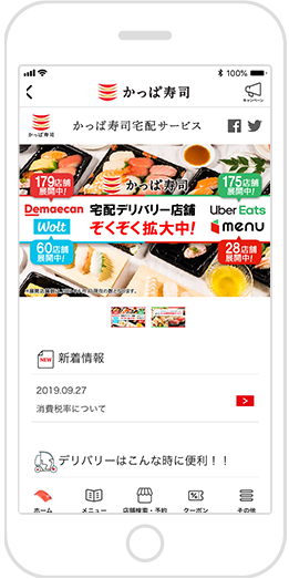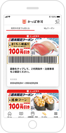 ※スマホのみのご利用となります。※かっぱ寿司アプリを使用の際に発生する通信費用は、お客様のご負担となります。