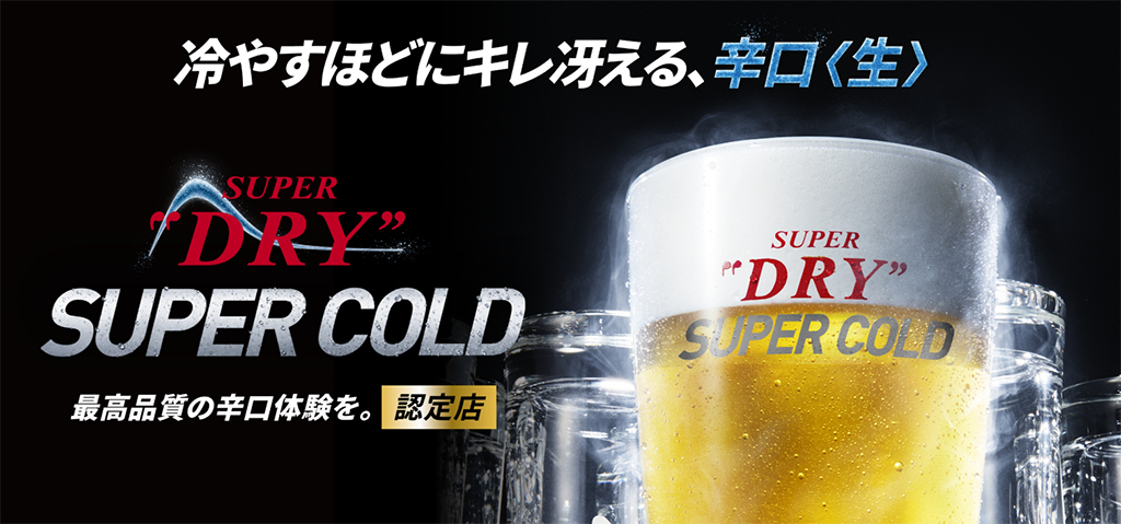 SUPER COLD認定店では、スーパードライの辛口を引き立てる“冷たさ”を実現するため、ビールの温度を4℃未満で提供させていただきます。