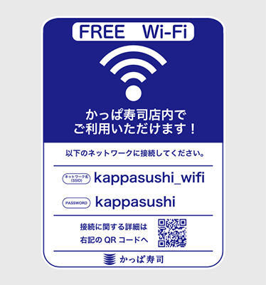 かっぱ寿司のお店で無線LANによるインターネット接続がご利用いただけます。