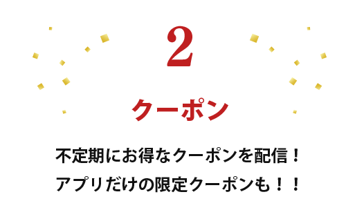 「クーポン」画面より配信中のクーポンをお選びいただき、